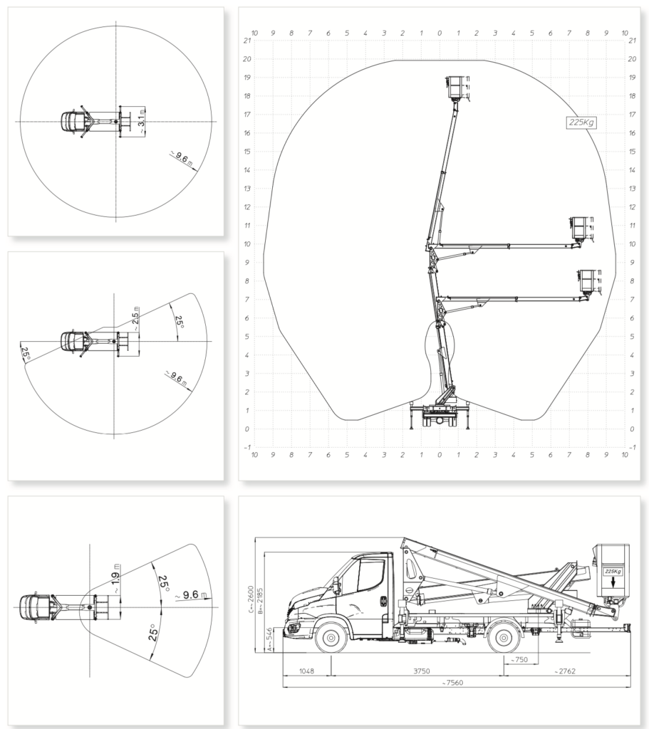 Max horizontal outreach: 9.6m (31.5 ft)